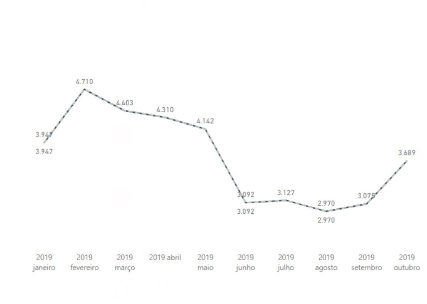 De acordo com o gráfico enviado pela Aneel, houve um aumento significativo nas reclamações de março para abril, período em que a quarentena começou no país e as pessoas passaram a ficar mais em casa. A partir de julho deste ano, pico do gráfico, o número segue trajetória de queda.