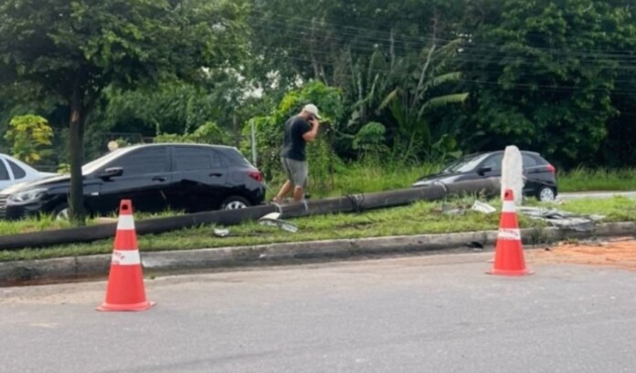 Um motorista não identificado, perdeu o controle do carro e derrubou um poste na manhã desta segunda-feira (19), na Avenida Torquato Tapajós, na estrada que também dá acesso ao Aeroporto Internacional de Manaus.