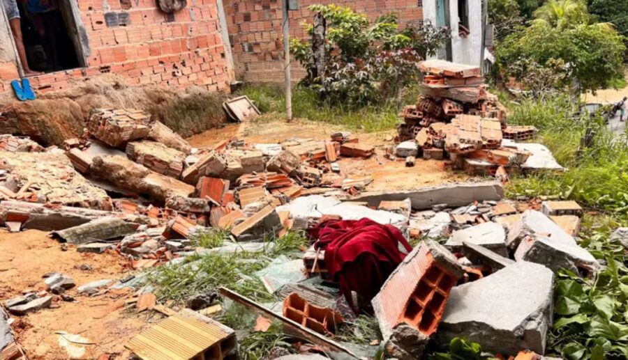 Um muro de uma residência acabou cedendo e vindo ao chão, na tarde deste sábado (02),  no Gilberto Mestrinho, na zona leste da capital amazonense.