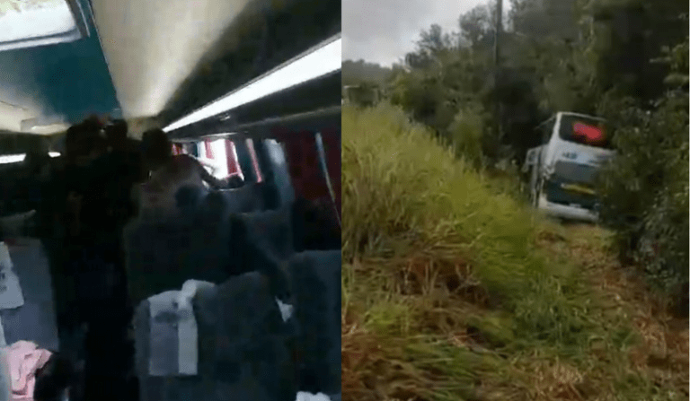 Humaitá/AM – Nesta segunda-feira (18), um acidente envolvendo um ônibus com passageiros aconteceu no trajeto Humaitá-Porto Velho na BR-319. O veículo caiu em uma ribanceira. O vídeo mostra que a correnteza da água parecia está forte.