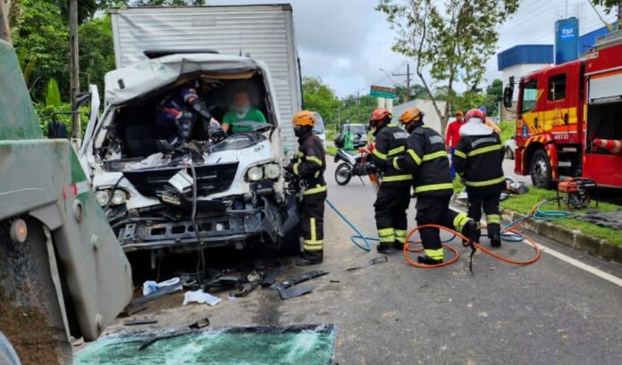 Segundo informações, do Centro de Operações Bombeiro Militar (COBOM), os militares constataram que o acidente ocorreu com uma colisão entre o caminhão baú e uma caçamba.