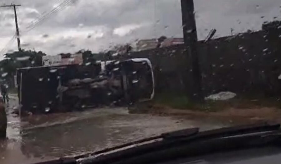Segundo a informações, um carro tentou fazer uma curva na Avenida José Henrique Lindoso, mas acabou se chocando com um caminhão, que tombou na pista. Confira: