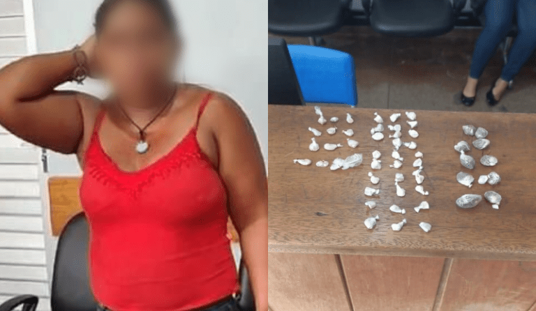 Ao notar a presença da viatura, a suspeita tentou fugir do local, porém foi prontamente interceptada pela equipe. Foram encontradas em sua posse, 42 trouxinhas de supostamente entorpecente tipo oxi e 10 combos contendo oxi e maconha, supostamente destinados ao tráfico.