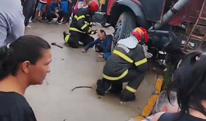 Segundo informações, o motorista de um caminhão perdeu o controle, rodopiou na pista molhada e atropelou a vítima. Confira: