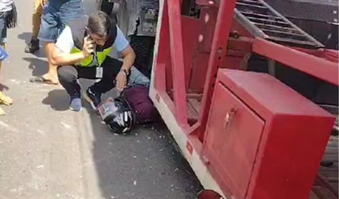 Um motociclista não identificado, quase foi esmagado por um caminhão na manhã desta quarta-feira (8), na Avenida Cosme Ferreira, na Zona Leste de Manaus.