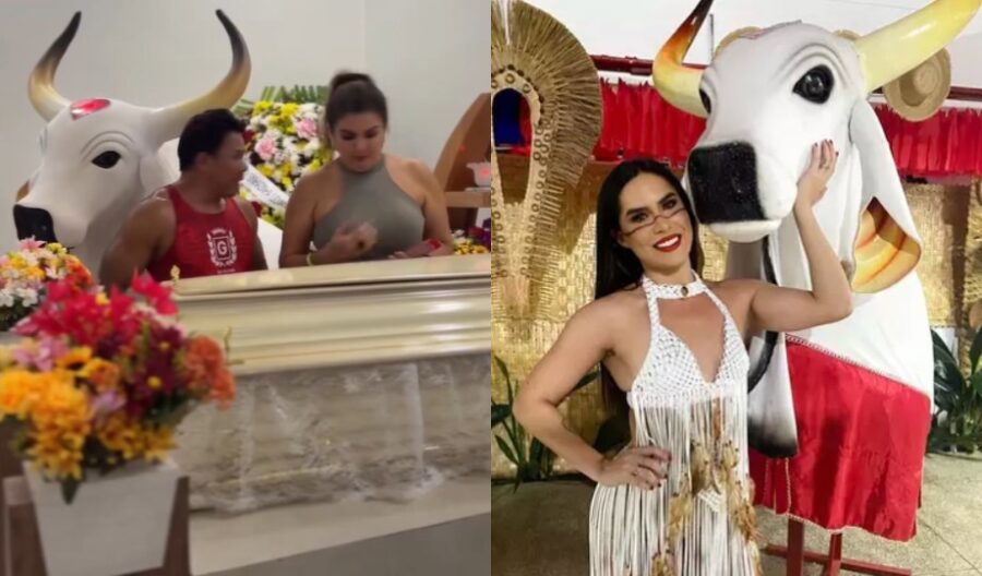 A Equipe do Bumbá deixou várias flores no caixão da empresária e comoveu a todos que estiveram no velório da eterna rainha da fazenda.