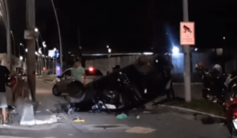 Relatos de testemunhas apontam que o condutor do carro apresentava sinais de embriaguez. Apesar dos danos no veículo, o motorista foi retirado por populares e estava com poucos ferimentos pelo corpo.