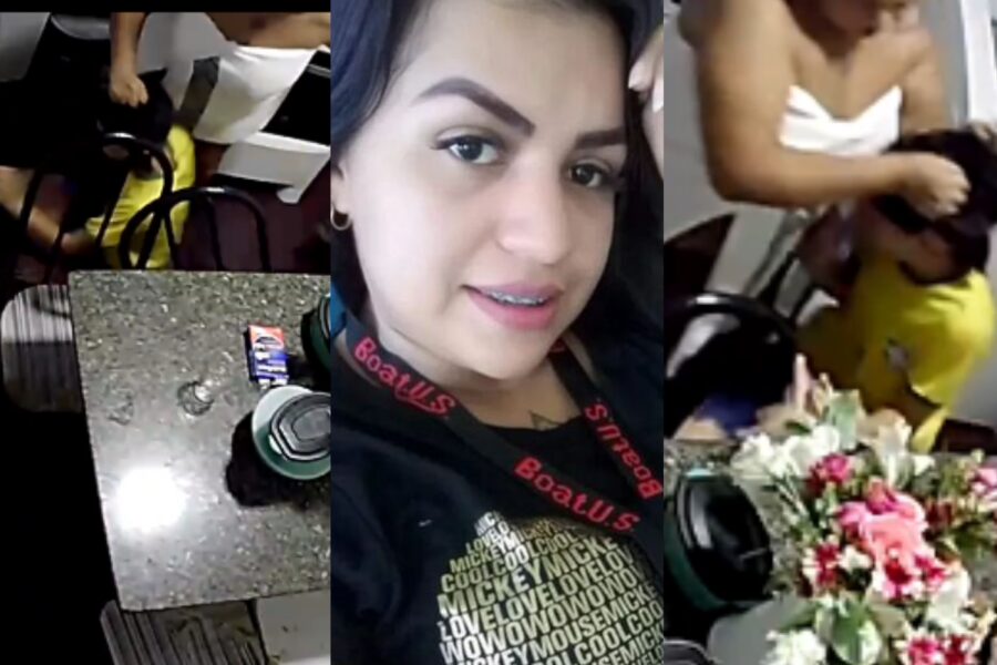Nas imagens a menina aparece chorando enquanto a madrasta desfere diversos golpes com um pedaço de madeira, e ainda chega a puxar o cabelo da criança.