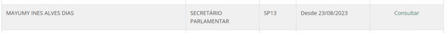 O Deputado Federal Saullo Vianna (UNIÃO BRASIL), tem como secretária parlamentar Mayumy Ines Alves Dias, cunhada do Prefeito Bi Garcia (PSD) e irmã da Deputada Estadual Mayra Dias (AVANTE).