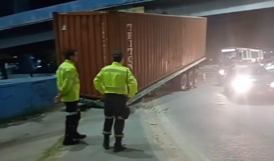 Um contêiner acabou se desprendendo de uma carreta na manhã da última quinta-feira (18), no São José, na Zona Leste de Manaus.