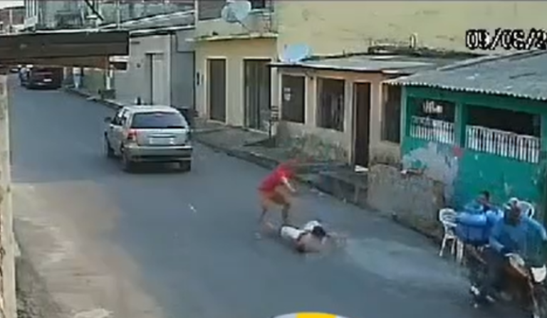 Nas imagens de uma câmera de segurança é possível ver que o alvo estava sentado em uma calçada, um carro para e logo o pistoleiro desce atirando.