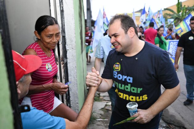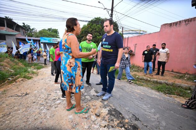 O candidato à Prefeitura de Manaus Roberto Cidade (União Brasil) fez caminhada na comunidade Campos Sales, na zona oeste da capital, nesta quarta-feira (28), e ouviu as reivindicações de moradores por melhorias na infraestrutura básica da área. A situação da comunidade, onde mais de 8 mil manauaras residem, é de ruas esburacadas e paradas de ônibus improvisadas.