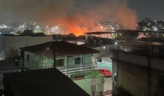 Um incêndio de grandes proporções assustou moradores do Morro da Liberdade na noite da última quarta-feira (4), na Zona Sul de Manaus.