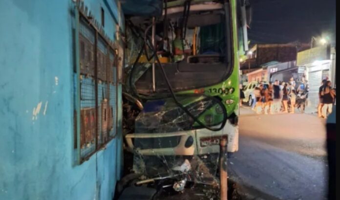 Um ônibus desgovernado acabou colidindo contra uma residência na noite do último sábado (19), na Compensa, na Zona Oeste de Manaus.