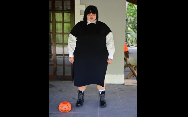 Thais Carla entrou no clima de Halloween nesta quinta-feira (31) e apareceu no Instituto Luisa Mell, em São Paulo, vestida como Wandinha, da Família Addams. Enquanto isso, Luisa Mell escolheu a fantasia de Arlequina para celebrar a data.