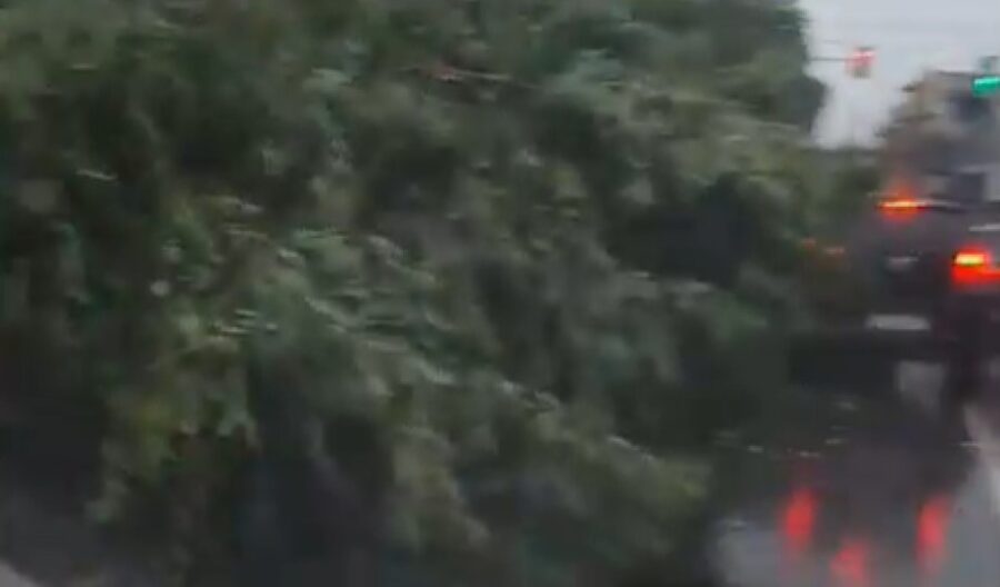 Uma árvore tombou na manhã desta quarta-feira (6), na Avenida Brasil após uma forte chuva cair sobre Manaus.