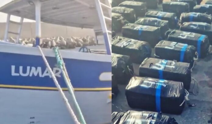 A Marinha e a Polícia Judiciária de Portugal interceptaram um navio pesqueiro de bandeira brasileira no Atlântico, transportando mais de 1,6 tonelada de cocaína. A embarcação, supostamente usada por uma organização criminosa para traficar drogas da América do Sul para a Europa, foi localizada a 900 km a oeste do arquipélago de Cabo Verde e escoltada até o local pelas autoridades.