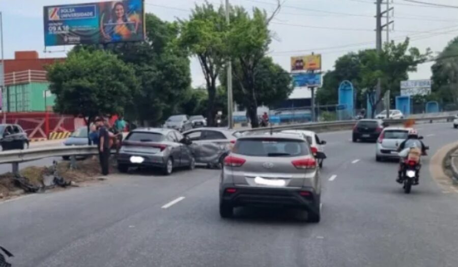 Dois carros ficaram destruídos na manhã desta terça-feira (10), após uma colisão na Avenida Cosme Ferreira, na Zona Leste de Manaus.