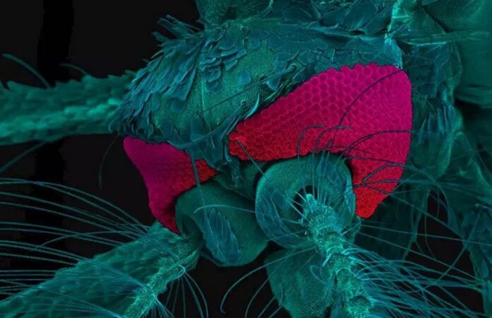 Com o título “Infectious Look” (“Aparência infecciosa”, traduzido para português), a imagem produzida pelo tecnólogo em microscopia e bolsista do Fundo de Reserva Específico de Pesquisa, Desenvolvimento e Inovação Tecnológica (FEPD&I) da UEA, Jander Matos, e por Joaquim Nascimento, doutorando em Biologia Evolutiva & Conservação do Instituto Nacional de Pesquisas da Amazônia (Inpa), apresenta detalhes dos olhos e da estrutura frontal do mosquito Aedes aegypti, espécie que transmite dengue, chikungunya, zika e a febre amarela urbana.