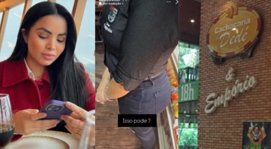 Ela aparece indignada próximo a uma gerente do local, que a informou que por ordem do superior, elas não poderiam ser atendidas. As amigas teriam almoçado mais cedo no estabelecimento e depois decidiram beber no local, mas foram impedidas.