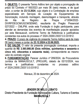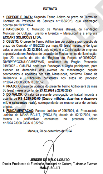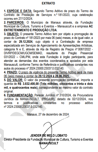 Segundo informações do Diário Oficial do Município (DOM), divulgada na manhã da última sexta-feira (24), seis empresas prestadoras de serviços da fundação, tiveram seus contratos milionários renovados pelo diretor-presidente, Jender Lobato.