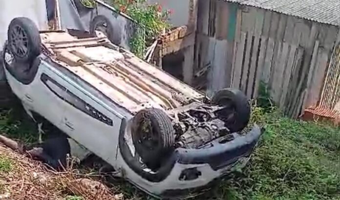 Segundo informações, o veículo capotou em um terreno entre duas residências. Ainda segundo informações, por sorte ele não atingiu nenhuma casa.