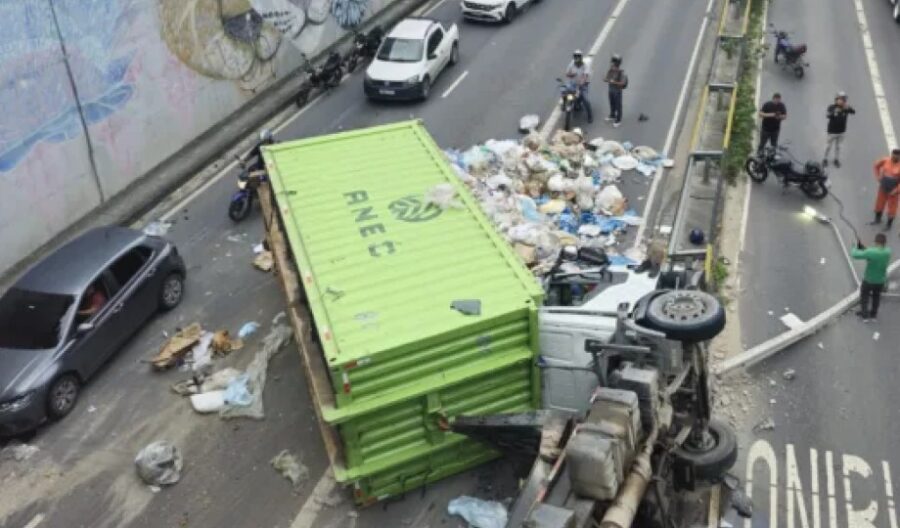 Uma carreta de lixo tombou na tarde da última terça-feira (28), na Avenida das Torres, no Cidade Nova na Zona Norte de Manaus.