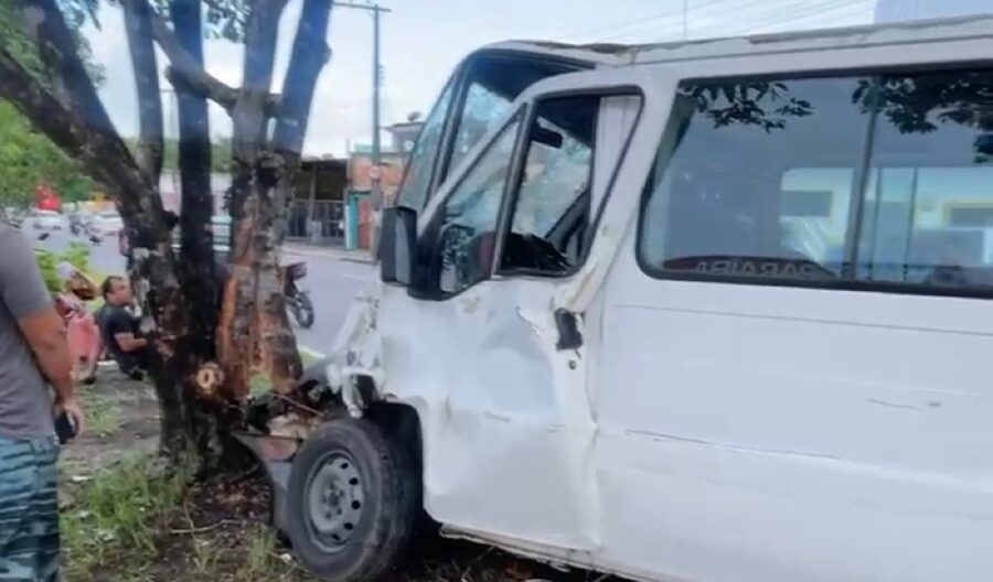 Uma van desgovernado acabou colidindo contra uma árvore na manhã desta quinta-feira (13), na Avenida José Henrique Bentes de Rodrigues, no Colônia Terra Nova, na Zona Norte de Manaus.