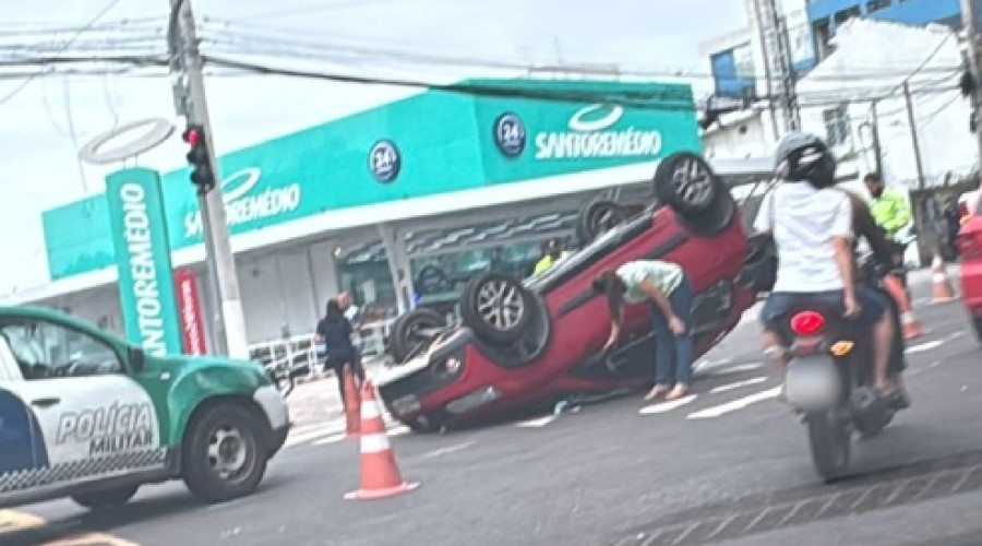 De acordo com informações de testemunhas, o carro perdeu o controle e capotou no meio da via pública em frente a uma farmácia.