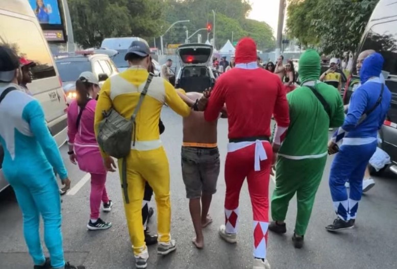 Agentes da Polícia Civil de São Paulo se disfarçaram de Power Rangers para combater o crime em um bloco de carnaval na Zona Sul da cidade. A estratégia funcionou: na tarde deste sábado (1º), um ladrão foi preso com sete celulares furtados.