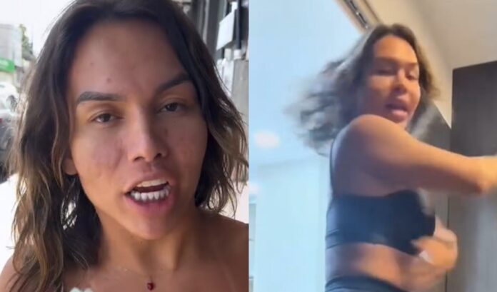 Nas imagens, a influencer afirma que desde julho do ano passado o devedor estava “segurando” sua grana, em um ponto do vídeo a influenciadora aparecer com os seios para fora. Confira: