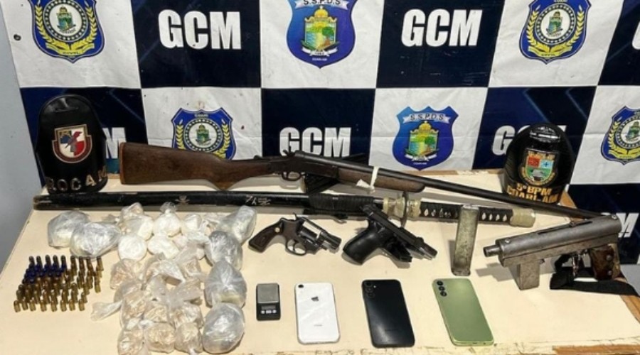 No local os agentes encontraram o suspeito na posse de uma pistola, um revólver, uma submetralhadora artesanal, uma espingarda e aproximadamente setenta munições de diversos calibres.