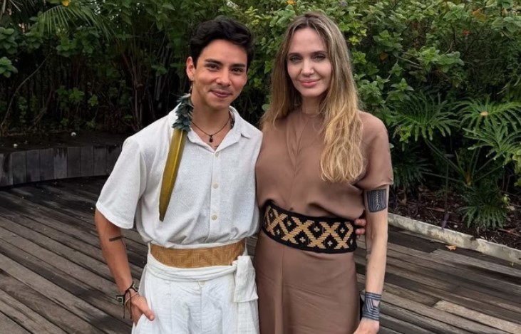 No sábado (5/4), Jolie se encontrou com o estilista amazonense Maurício Duarte, em evento realizado na ONG Aya Earth, na capital paulista. A reunião destacou o engajamento da atriz com temas sociais e sustentáveis.