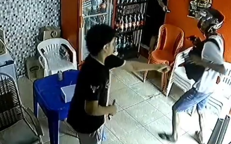 Nas imagens é possível ver as duas vítimas brincando no interior do estabelecimento quando a dupla de assaltante se aproxima e anuncia o assalto. Eles levaram toda a renda do local e os celulares das vítimas.