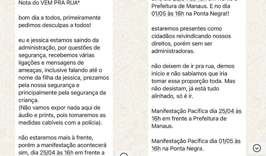 Uma das organizadoras do movimento #ForaDavidAlmeida em Manaus registrou nesta quarta-feira (23) ameaças de morte direcionadas à sua filha menor de idade, em suposta retaliação à sua atuação política.