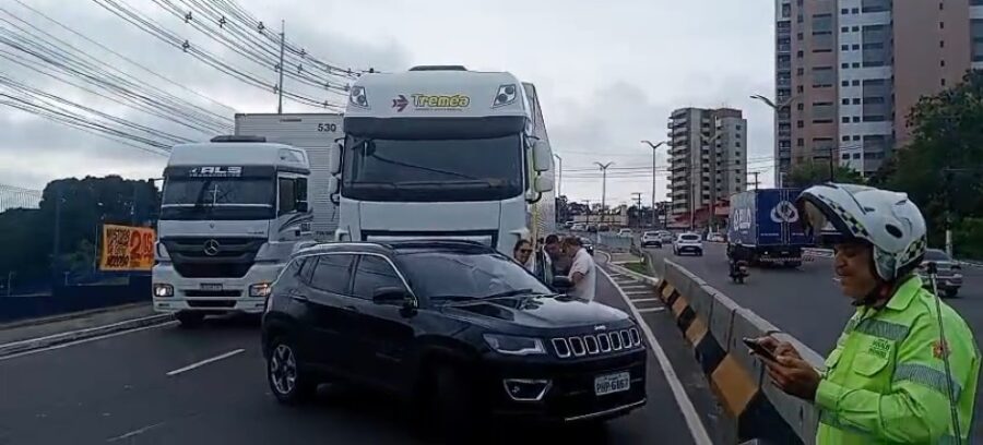 Na manhã desta quarta-feira (30), um acidente envolvendo um caminhão e um carro de passeio causou lentidão no trânsito da avenida Efigênio Salles, na zona centro-sul de Manaus.
