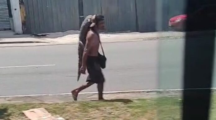 Uma cena curiosa chamou a atenção de quem passava pela Avenida Desembargador João Machado, no Planalto, Zona Centro-Oeste de Manaus, nesta quinta-feira (17). O vídeo de um homem carregando um jacaré pequeno nas costas viralizou nas redes sociais e gerou debates sobre a veracidade do ocorrido.