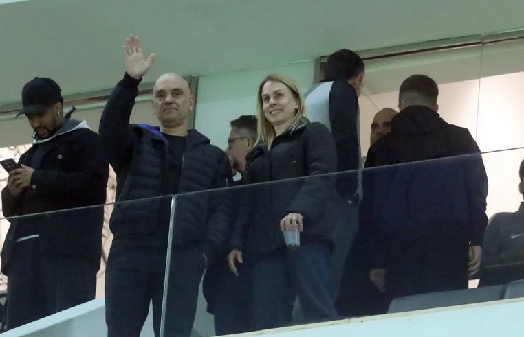 No estádio, Moraes foi visto em um dos camarotes, acompanhado do presidente interino do Corinthians, Osmar Stábile.