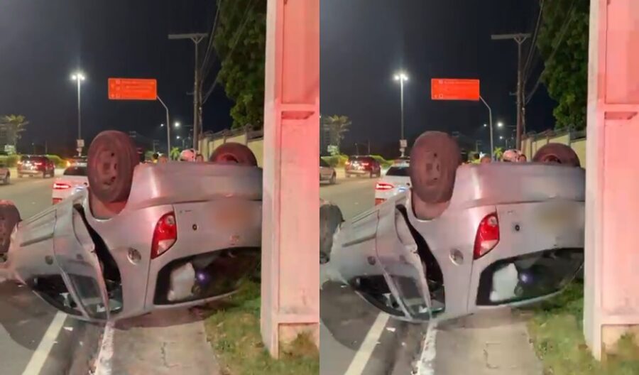 Um carro capotou na noite desta terça-feira (2) na Avenida Coronel Teixeira, no Compensa, Zona Oeste de Manaus.