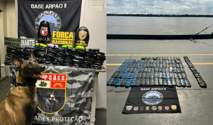 Três homens foram presos em flagrante por tráfico de drogas durante uma operação realizada na Base Fluvial Arpão 2, no município de Coari, a 363 quilômetros de Manaus, na noite de quinta-feira (4). Na ação, policiais militares encontraram 102 tabletes de pasta-base de cocaína escondidos em uma embarcação que seguia de Tabatinga para a capital amazonense.