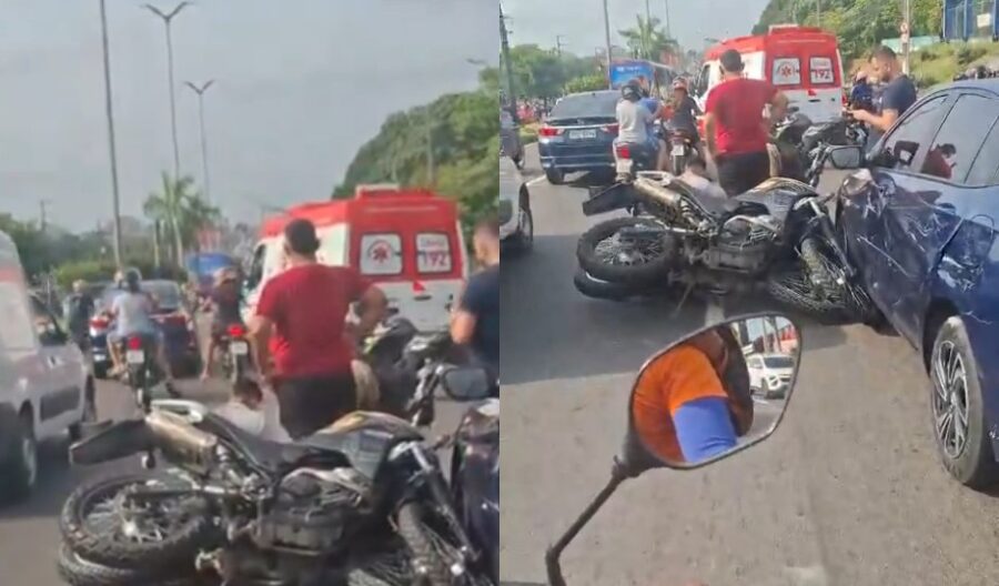 Um vídeo que circula nas redes sociais mostra o motociclista caído no chão aguardando o atendimento do Serviço de Atendimento Móvel de Urgência (Samu). O estado de saúde da vítima ainda não foi informado.