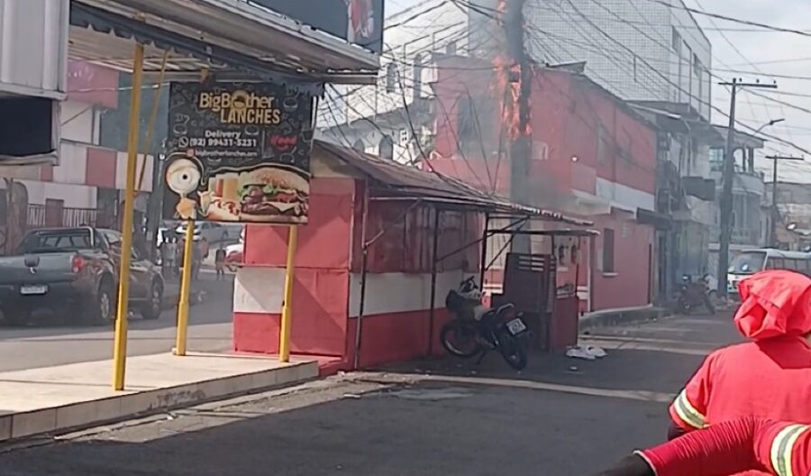 Um poste de energia elétrica pegou fogo na manhã desta terça-feira (21), em frente à quadra da Escola de Samba Grande Família, localizada em São José I, na Zona Leste de Manaus. O incidente assustou moradores da área e mobilizou equipes do Corpo de Bombeiros.