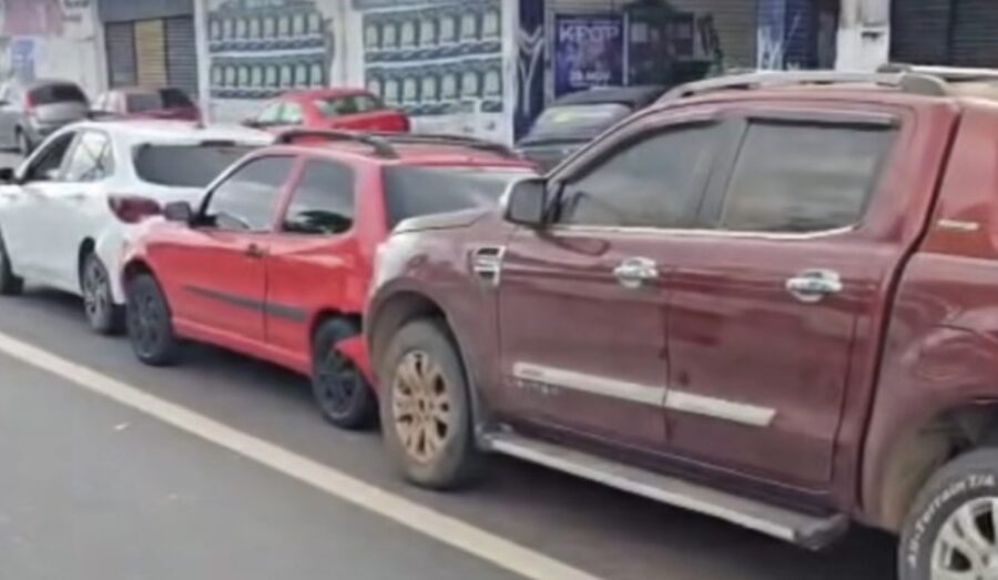 As circunstâncias do engavetamento e o motivo do surto do motorista serão apurados pelas autoridades de trânsito.