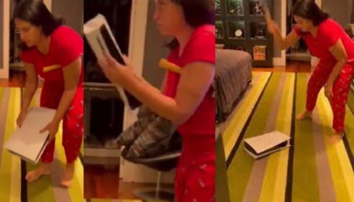 Sem pronunciar muitas palavras, ela toma o videogame do garoto e começa a destruí-lo diante de seus olhos, enquanto ele permanece sentado na cama, visivelmente em estado de choque.