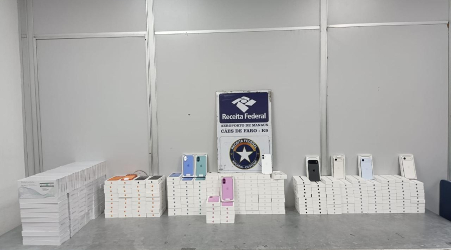 A Equipe de K9 da Receita Federal interceptou nesta terça-feira, dia 2, no terminal de cargas do Aeroporto Internacional Eduardo Gomes, em Manaus, um carregamento composto por 2 mil iPhones, unidades de iPad, Apple Watch, mouse magic e uma grande quantidade de retatrutida, substância utilizada no tratamento da obesidade e cuja circulação ainda é proibida no Brasil.