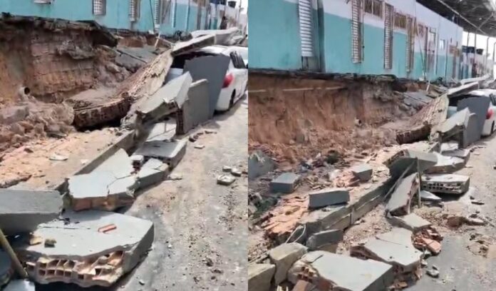 O temporal que atingiu Manaus na noite de domingo (7) resultou no desabamento de parte do muro da feira situada na Rua Ministro Mário Andreazza, na área da Ceasa, na Zona Sul. A estrutura cedeu e atingiu três veículos que estavam estacionados próximos ao local.