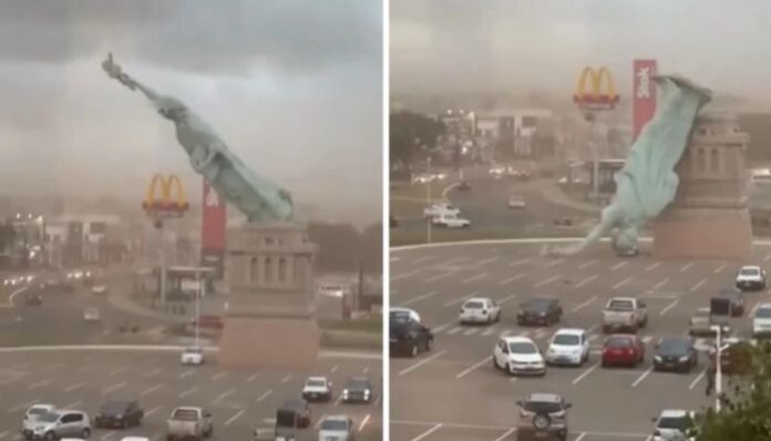 A estátua tinha 35 metros de altura e era uma réplica da Estátua da Liberdade.