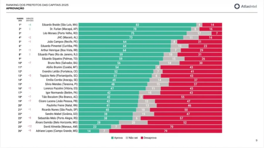 Mais um reflexo da gestão David Almeida aparece em um levantamento nacional que expõe o desgaste da Prefeitura de Manaus. Pesquisa divulgada pela AtlasIntel coloca o prefeito entre os piores avaliados do Brasil, com 70% de reprovação, ocupando as últimas posições no ranking de prefeitos das capitais em 2025.