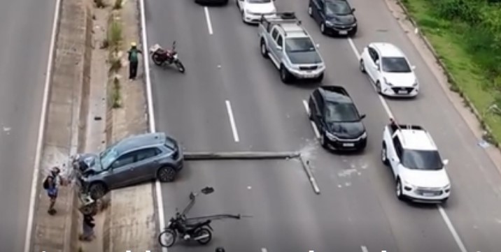 Um acidente registrado na tarde deste domingo (28) comprometeu o tráfego na rodovia AM-070, principal via de ligação entre Manaus e Manacapuru. Um carro modelo Polo perdeu o controle da direção e colidiu contra um poste instalado no canteiro central, provocando a queda da estrutura sobre a pista.