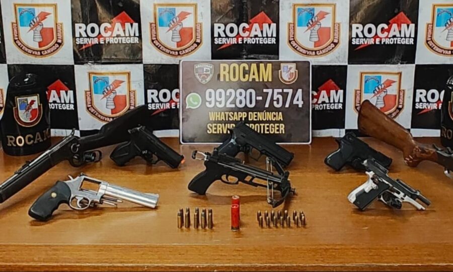 Um homem não identificado, foi preso na sexta-feira (2), após uma operação motivada por denúncia anônima de cárcere privado e violência doméstica em Manacapuru. Durante a ação, os policiais apreenderam quatro armas de fogo, três simulacros de pistola e 27 munições de diferentes calibres.